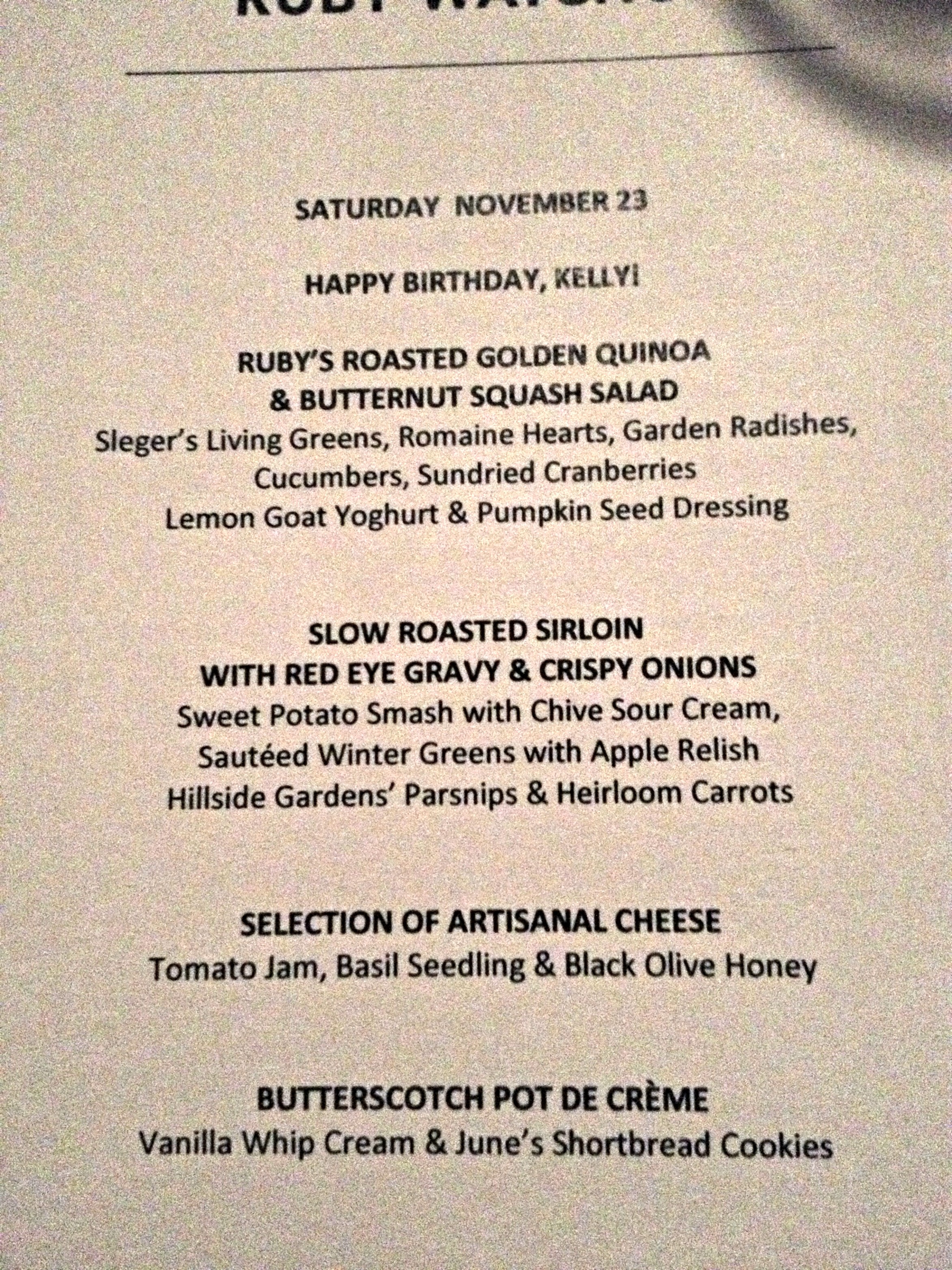 1- Ruby Watchco. (One of my favourite restaurants in the city!) $$$. My birthday dessert: Butterscotch pot de crème (melted in my mouth!). See menu photo below for description. The entire dinner was incredible. http://rubywatchco.ca/