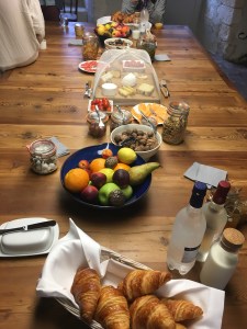Our multi-course lunches and dinners often included salads with tasty champagne vinaigrette, soufflés, polenta, egg concoctions and spices. Our dinners were much more elaborate: charcuterie, several local wines and house-made Grey Goose spirits, dry martinis, fresh bread, decadent desserts, steak, red millet, carpaccio, and much more.