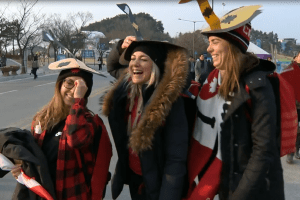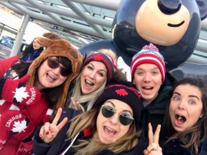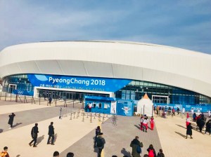 Wow, am I tired… however we’re also running on adrenaline, and I have a feeling that’s the way this entire week will be. April, Grace, Jane, Ian and I are on our way to Gangneung Olympic Village. There are three different areas for the Olympics, and Gangneung is where we will be spending a large chunk of our time, as it is where the skating, hockey and curling rinks are, along with Canada House. Us ladies are heading to see Canadian Sweethearts Scott and Tessa perform their short program in Ice Dance, and Ian is off to his first volunteer shift for Team Canada.