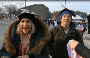 Soon, it was time for the main event. Two Canadians made it to the Finals, which made it all the more exciting! There were a ton of Canadians there, and CBC, COC and Reuters journalists (now THAT was an interesting interview) were filming us and interviewing us. It’s so interesting to meet fans from across the world. We met a Australian girl and her father who are lovers of the Olympics, we met a group of Kiwi’s who were cheering on the only New Zealander in the competition, and we had about ten groups of South Koreans ask to take selfies with us. You just never know what will happen during a day at the Olympics!