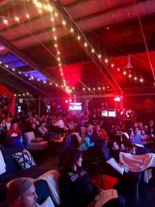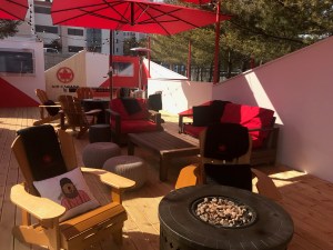 I don’t think I have explained this before, so I will now. Many of the countries participating have Houses. For example, we volunteer at Canada House. Canada House is a place where athletes and their friends and families can go hang out and watch the events in a changed-up atmosphere. This year, for the first time ever, spectators can buy daily tickets and also enjoy their time at Canada House. Canada House has TV’s everywhere, a giant flight deck sponsored by Air Canada which has a patio with fire pits and a seating area, a full menu that included poutine, bleachers to watch the events on the big screen, and Canadian beer. It was such a great, large space. Another cool thing is that it is open to everyone, not just Canadians.