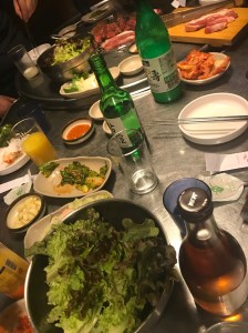 For drinks, we were severed rice and plum wine, Soju (a Korean must-have) and Cass (a Korean brand of beer). We ate kimchi, kimchi jjigae (a delicious soup), and pickled side dishes.