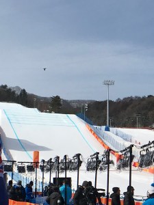 The past few days have been a whirlwind. Today, our day started with Ski Cross. Ian M, Ian T, Justin and I took the train in to PyeongChang to head to the event and we weren’t disappointed. For those of you who don’t know much about the timed freestyle event, click here. It started with the seeding event, and Canada was lucky enough to have four competitors participating, so it made the competition all the more exciting. The ski hill is also located beside the half pipe, so in between runs we got to watch some athletes practicing on the half pipe, which was an added bonus!