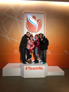Holland Heineken House was the same idea. They are known for epic dance parties in the evenings, as they bring in different bands and DJ’s each night, and of course, Heineken and German fare. I bought our tickets in advance, thanks so some Intel from my sister Shane’s friend Paige, also a COH volunteer, and we were ready to go. The four of us took a short train and then a taxi to HHH and didn’t regret it. Everyone was lovely and the card top-op was similar to the wristband top-up that Canada House offered. This means you put money on your card and spend it inside the House, rather than using cash or credit to pay for things once inside. We got ourselves some beer and white wine spritzers and ate bitterballen and beef curry burgers. We watched curling on the big screen and chatted with the US Men’s Hockey Team affiliates beside us. We even saw a friend I made yesterday, Marjory, since she is a volunteer for the Dutch House.