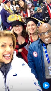 In between the second and third period, we noticed Hoda and Al Roker in the audience, so I dragged Grace down to their seats and told them that Canada loves them (our friends in particular) and asked them for a picture. They were super sweet (photo below) and told us good luck!
