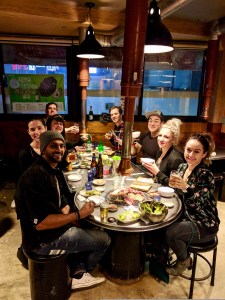 Last night, despite being exhausted from our day of volunteering at Canada House (for those of us who were volunteering) we had our group dinner and night out in Seoul. Having spent the Monday evening in a different Air BNB (as I mentioned, we decided to get an Air BNB in PyeongChang for the evening so we wouldn’t have to do a quick commuting turnaround from Olympics to Seoul) and then volunteering all day (I was on Operations, which meant I did mostly Wrist Band money top-ups), we were ready to head back to Seoul on the train, freshen up and head out. We weren’t as tired as I thought we would be from volunteering all day… since Scott and Tessa won, we must have just kept that energy going!