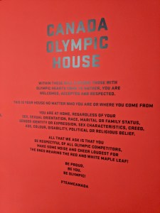 The athletes in the House were always friendly and energized, and it was so fun to honour them through the various Sport Celebrations that Canada House puts on for each sport during the evenings. And lastly, I mentioned the atmosphere, but I will again: the charged environment in the House was contagious. I couldn’t help but be excited while I was there.
