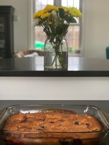 Peach and Blueberry Cobbler: My nanny (what we call my grandmother) used to make the best peach cobbler. Every August she would bring home Ontario peaches from the store and I would sit in her kitchen and watch her make it. This year, I wanted to make make her some peach cobbler and bring it to her in her retirement home. My sister located my nanny’s recipe, but I had already started on the cobbler recipe I found online: https://www.myrecipes.com/recipe/easy-peach-cobbler. It is labeled as easy and since I have never made it before, I definitely wanted to start with easy.