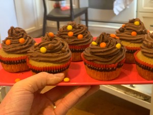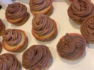 Peanut Butter Cupcakes with Peanut Butter and Chocolate Frosting: We made these for our dear friend Gavin’s birthday! (Again, a porch drop-off, don’t worry!) He is a peanut butter lover, so we made sure these were full of the sticky condiment! They were moist, delicious and the PB was not over-powering! We will definitely be making these again. I will say that it wasn’t as easy to pipe with this frosting compared to the Snickerdoodle cupcakes listed above, but I think that is because in addition to there being peanut butter in the frosting and making it stickier, Xavi and I are also novice pipers (this was one of our first attempts at it)! https://sallysbakingaddiction.com/peanut-butter-cupcakes/