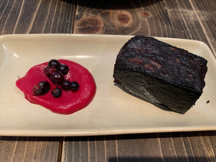 Ian got the Kaoya (lacquered Lac Brome duck supreme, Chinese crepe, spicy kimchi, and grilled camelina vegetables) and was very much looking forward to the duck and Chinese crepe in particular. We paired everything with Yasai Katsu (tempura vegetables, tentsoyu tōgarashi sauce, shichimi and pickled cucumber) and that side was probably the least exciting thing we ordered. (However, I am still dreaming about the pickles that accompanied the veggies!) We finished off our meal with Kurai (black sesame tone-on-tone consisting of ice cream, crumble, pound cake and silky tofu) and it was full of interesting, complimentary and surprising flavours and was beautifully presented. Our experience, overall, was amazing and I would definitely recommend Bo to anyone who enjoys Chinese, Japanese and Korean cuisine.