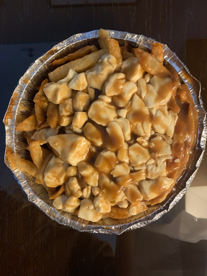 Chez Ashton– After a bunch of researching, Chez Ashton came out as one of the top greasy spoon poutine joints/chains. Ian and I shared a poutine from Chez Ashton, and while the cheese curds were a bit rubbery (I didn’t mind because they were also super plump, Ian did), I couldn’t help thinking of how much my kids would have loved it. I even took a photo of the menu for then, since the French menu featured a photo of a hot dog with poutine on it! Also, my kids especially would have loved that mayo and ketchup came on the side of the poutine, almost as a given.