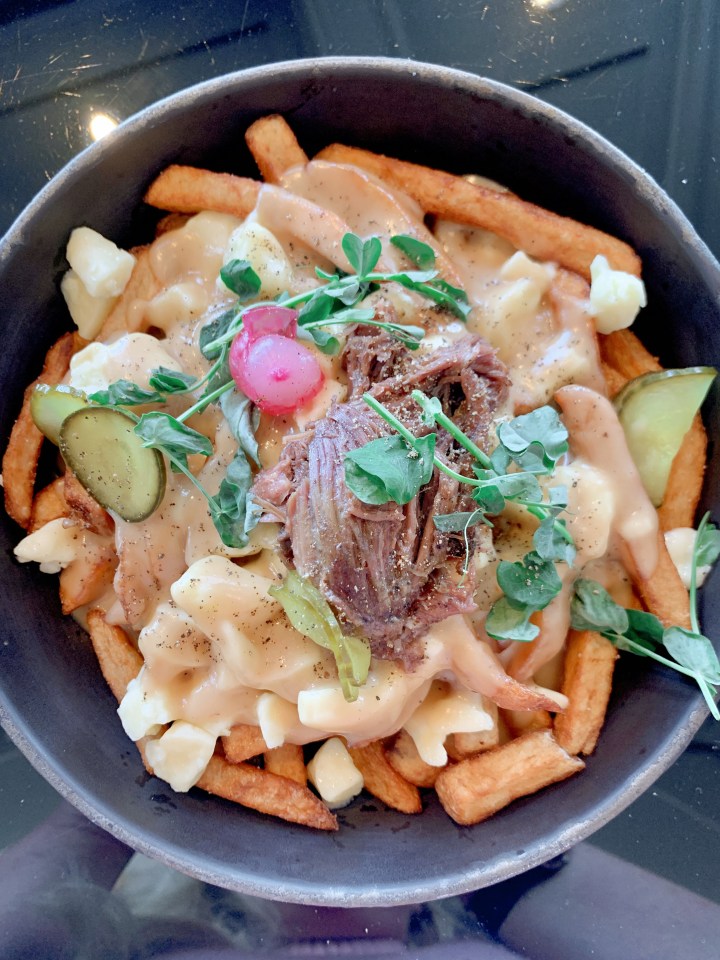 Our second experience at Sam was for a quick lunch before heading to the airport and was unexpectedly awesome! I shouldn’t say unexpectedly I suppose… but we weren’t anticipating such amnestying upscale poutine lunch option! You see, we originally wanted to check out Chic Shack— another greasy spoon poutine and burger chain that April recommended (check out her QC blogpost here) however they weren’t open until 4:00! Well, we didn’t end up having a greasy spoon experience- and we can’t complain! We were seated overlooking the gorgeous St. Lawrence River, and were served pulled beef cheek poutine (cheese curds and meat juice sauce, pickles). I typically prefer my poutine the traditional way, but this upscale pulled beef cheek option was delectable and the meat was so tender.