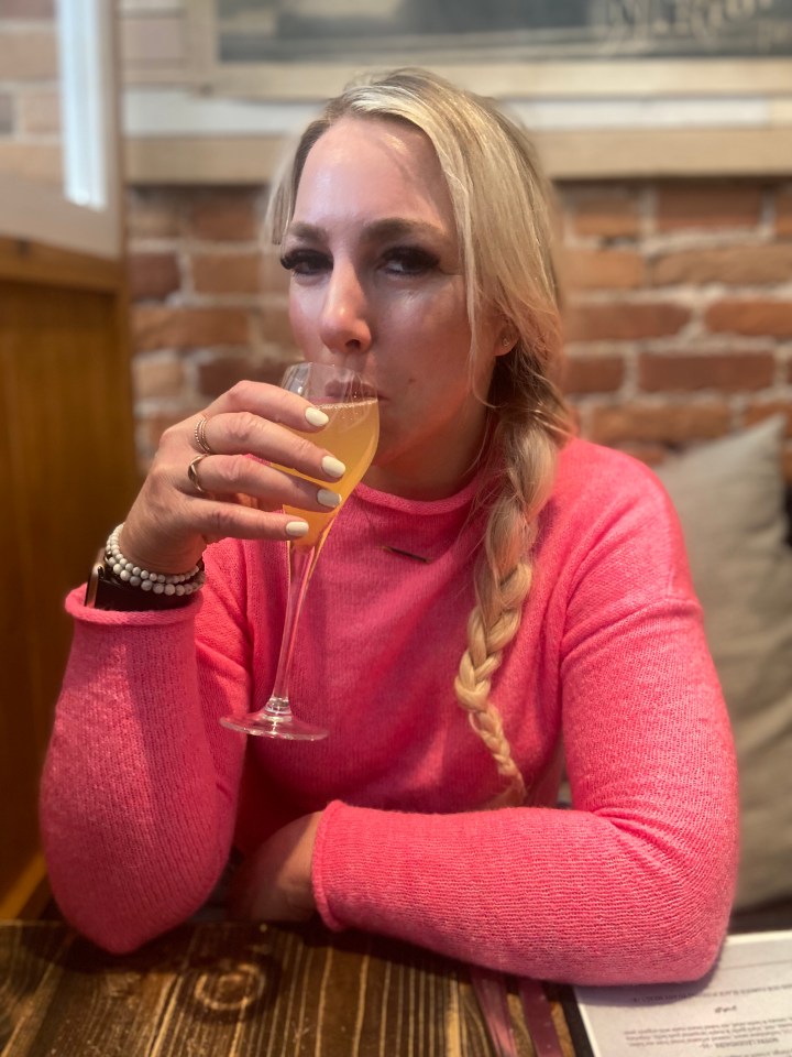 Chez Rioux and Pettigrew- Gosh, I was super long-winded when describing our experience at Bo, and I don’t think I am going to tighten anything up while I take you on our journey at the awesome Chez Rioux and Pettigrew! We had a lovely brunch at Rioux and Pettigrew, and walked through the snow and downhill from the Chateau to get there. We arrived window-blown and cold, and were welcomed with warmth, coziness and a welcoming staff. Ian and I loved the vibe of this spot; cool decor, lots of plants, wooden floors and tables, and a very appetizing menu. I checked out the menu online before booking- and knew exactly that I was going to get upon arriving, but I will get to that in just a moment. To start, Ian began with a macchiato and I started with the Mimosa Rioux which was made up of bubbly wine, pear juice, and cinnamon syrup- and holy smokes, this was the best mimosa I have ever had. I have never combined pear juice with bubbly before, and what a great invention it was. And the cinnamon syrup to cap it off? Breathtaking.